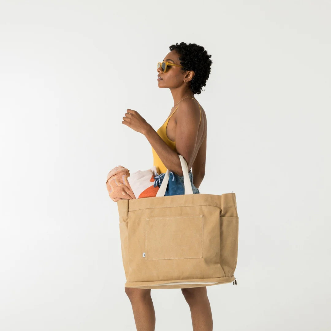 Our largest tote, equipped with a zippered mesh bottom to shake out sand, crumbs, and dirt. Comes with a matching insulated pouch to keep your snacks cool on the go!